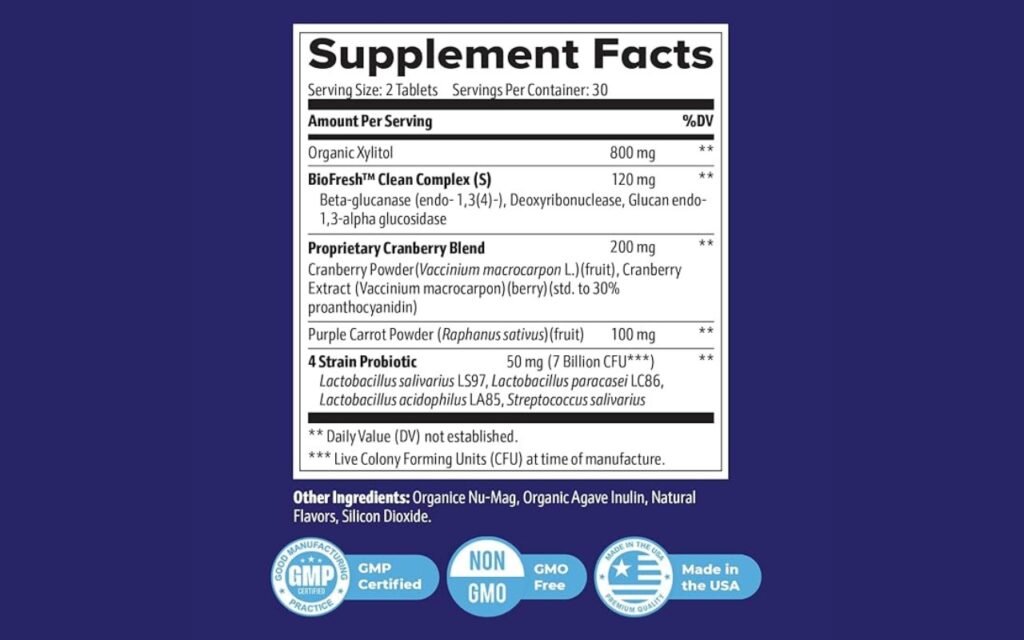 Benefit: Helps prevent the adhesion of bacteria to teeth and gums, decreasing plaque formation and infections.